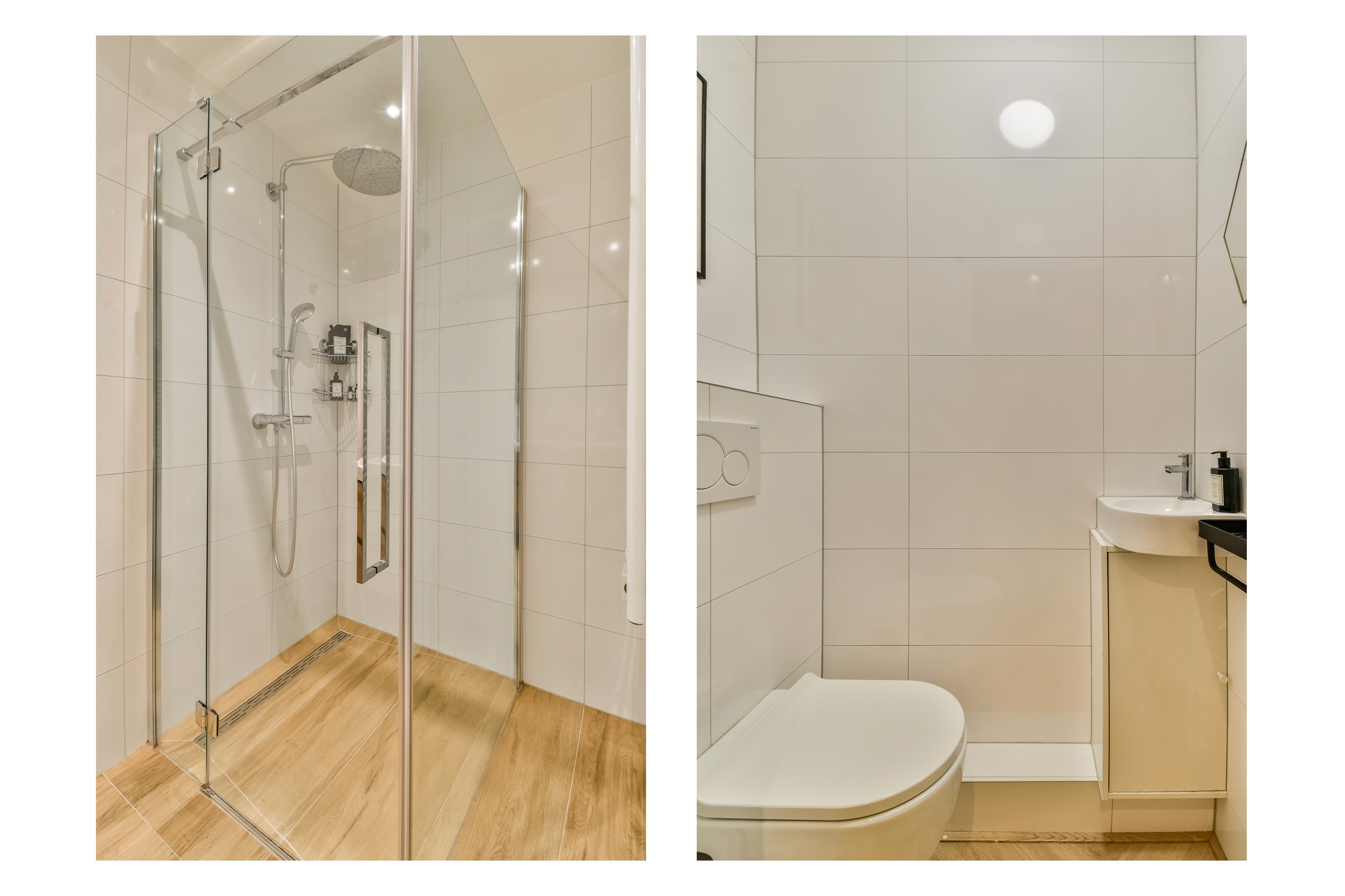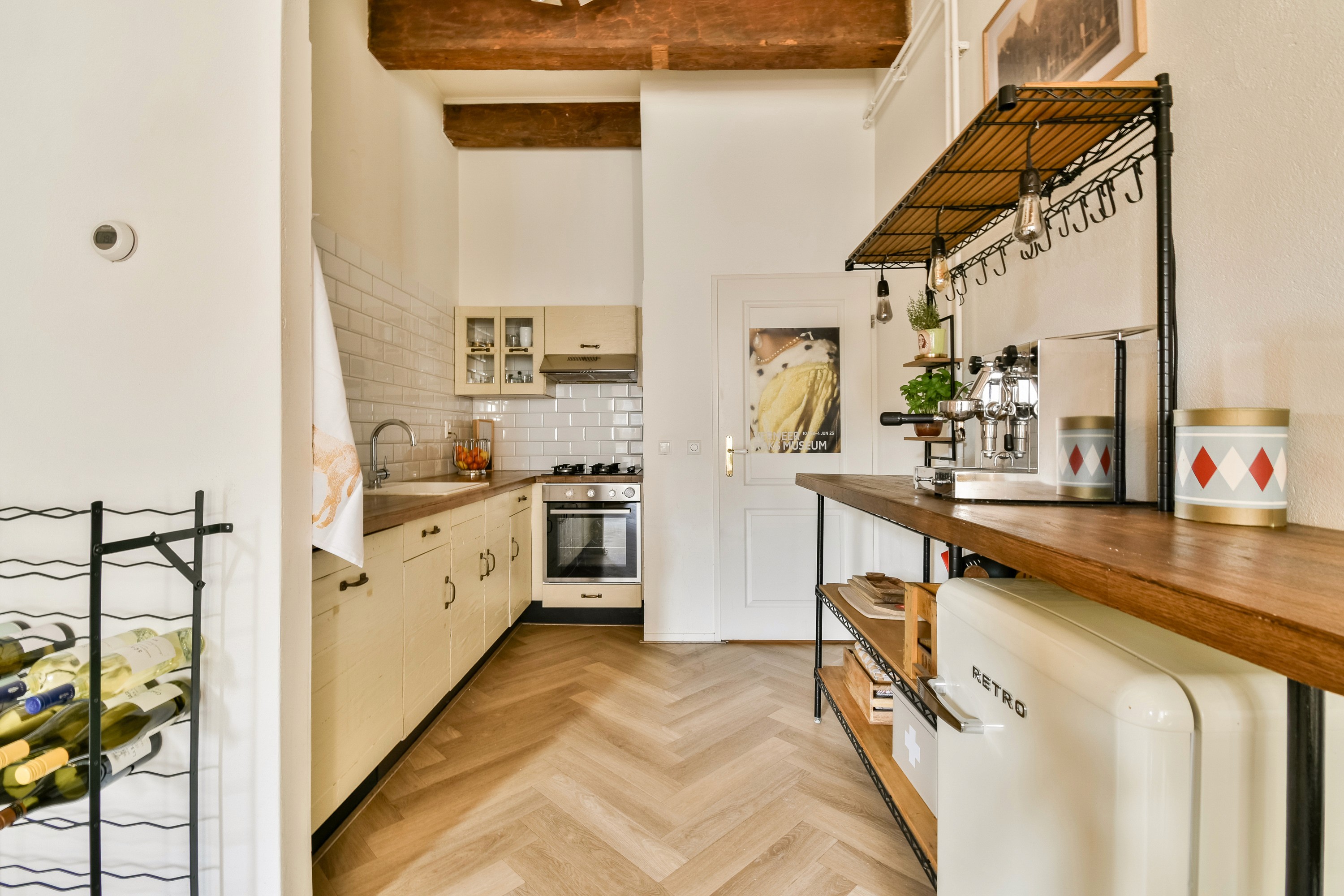 De woonkamer vormt het hart van het appartement en kenmerkt zich door een lichte en open opzet. De leefruimte staat in directe verbinding met de keuken, die is voorzien van diverse inbouwapparatuur. De slaapkamer wordt gescheiden door een stijlvolle glazen wand, wat zorgt voor een ruimtelijk en modern karakter terwijl de verschillende functies van de woning subtiel van elkaar worden gescheiden.